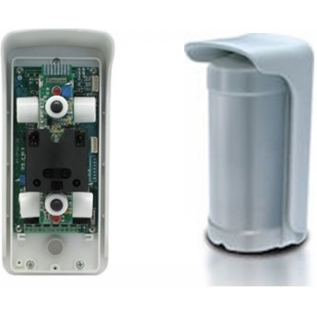 • Ασύρματος ανιχνευτής εξωτερικού χώρου – τετραπλού πυροηλεκτρικού στοιχείου (4 x PIR) με δύο δέσμες σε κάθε πλευρά δεξιά – αριστερά και 2 x PIR  στην πρόσοψη του ανιχνευτή.